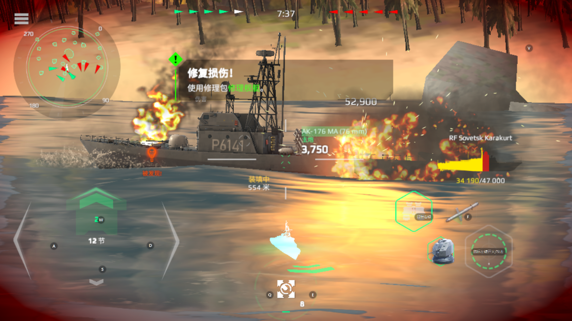 5、您还可以尝试在免费模式下浏览海洋领土和岛屿,享受高质量海军环境的模拟!但是别忘了小心,敌人的战舰和潜艇会出现,你需要和他们战斗。