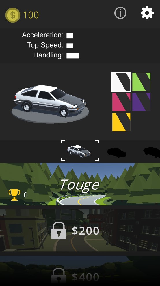 这款游戏主打的就是漂移赛车的玩法,尝试进行飙车的体验,