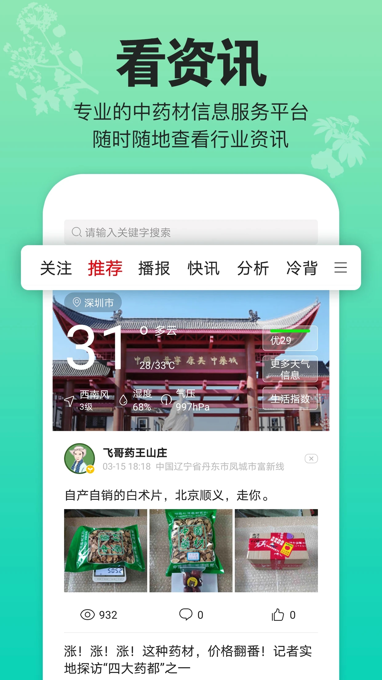 2.【看资讯】专业的中药材信息服务平台,随时随地查看行业最新资讯。