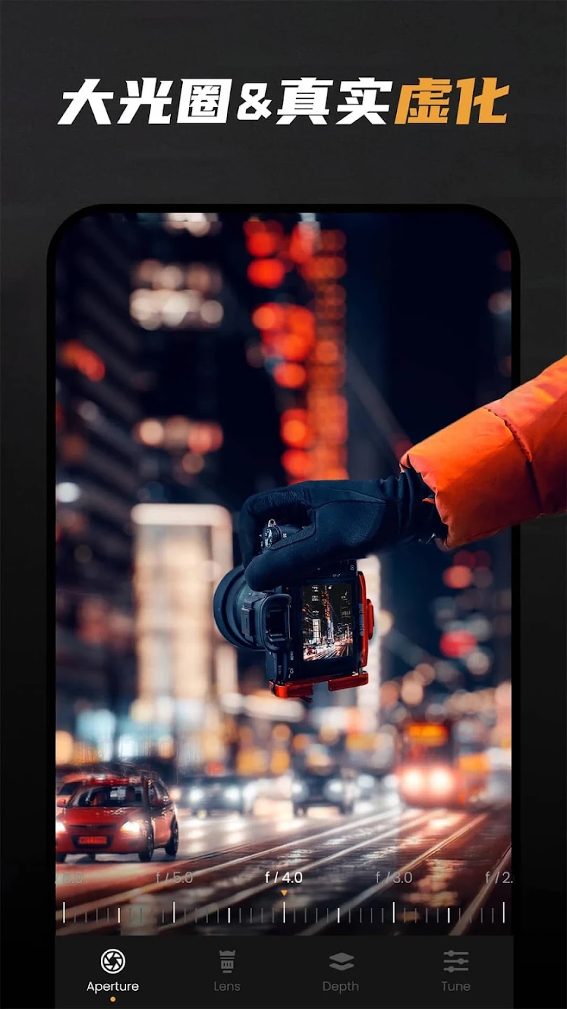 在手机上实现f1.4大光圈浅景深虚化效果。自动背景虚化,轻松拍出苹果手机的人像模式质感。媲美Focos.Tadaa slr等多款苹果专有景深虚化app。