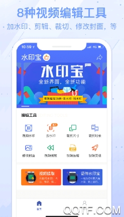 水印宝app是一款视频编辑软件,这款软件的视频编辑功能非常强大,有8种视频编辑功能,涵盖了剪辑、加水印、剪切、去水印、修改封面等功能,大家可以上传你需要去水印的视频,一键无水印提取视频。还可以给视频添加上涂鸦水印等各种水印哦,快来试试吧~