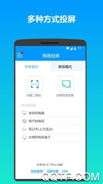 +扫描二维码:扫描电视电脑雨燕投屏APP的二维码,快速完成无线投屏;
