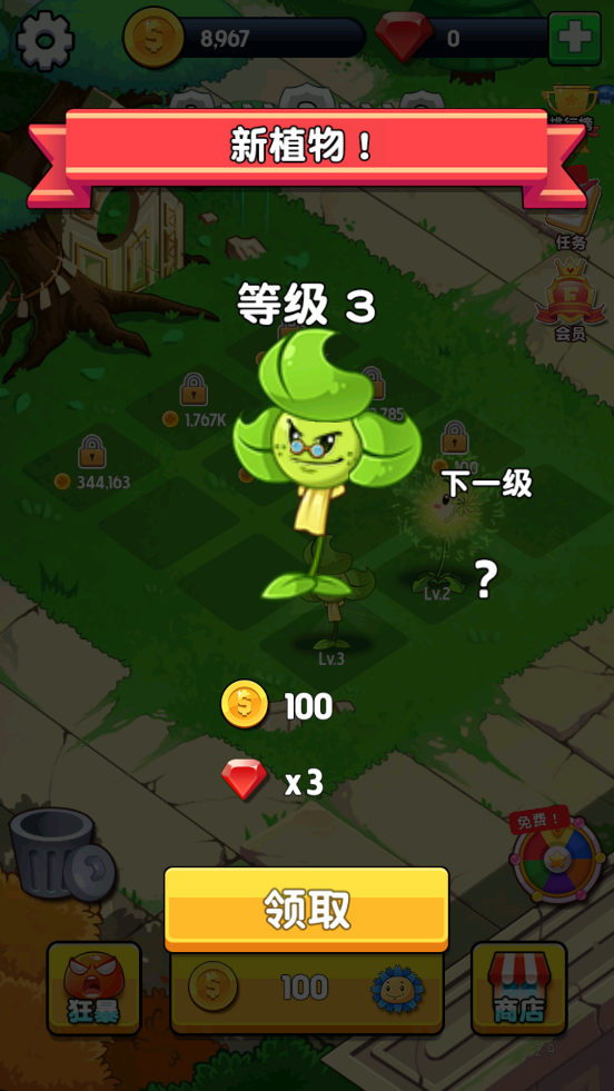 3.隐藏奖励,获得新的植物,获得强力技能。