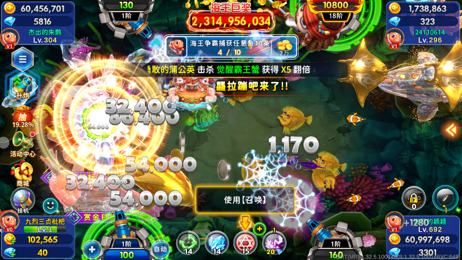 高倍率炮弹可快速累积金币,同时增加触发机会
