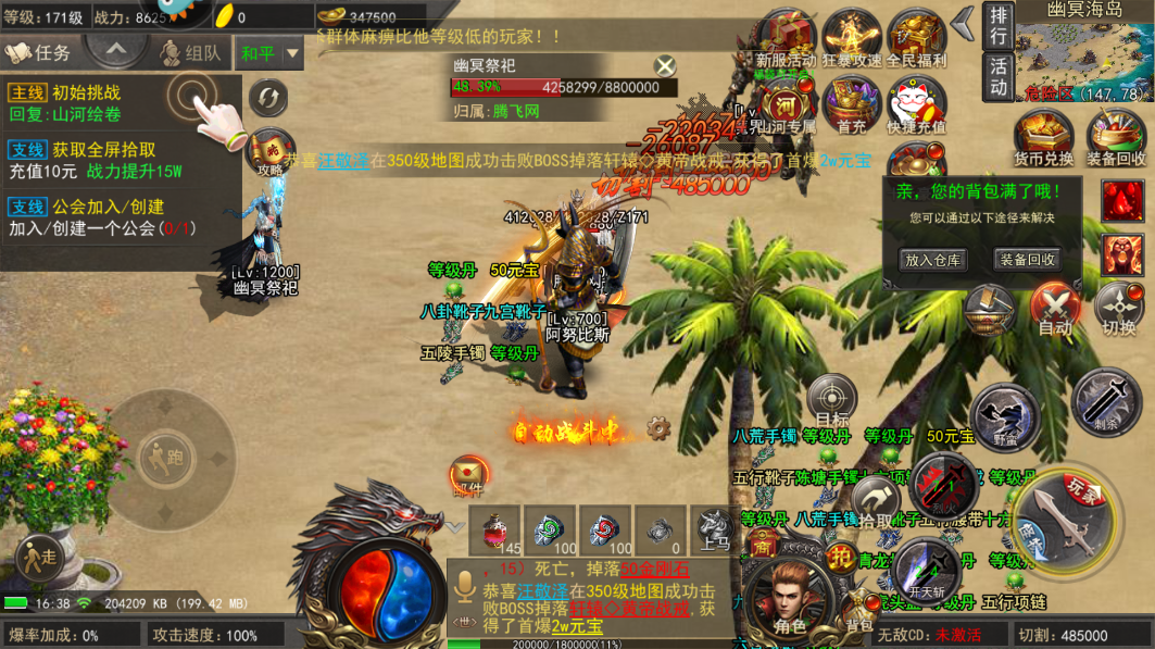 2. 超多BOSS战不停,首杀必掉神魔器,属性大幅提升。