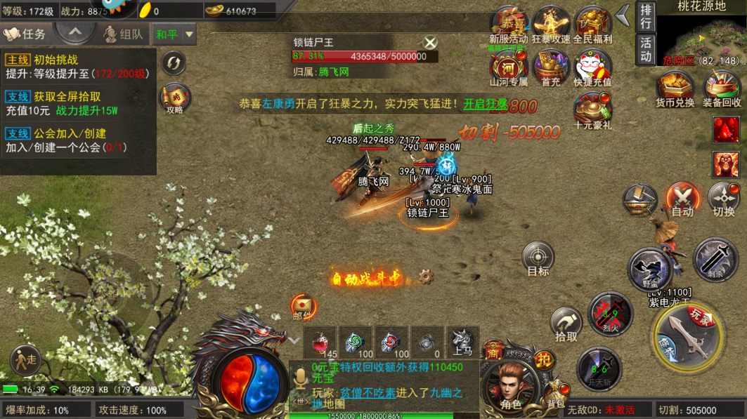 3.无限制的PK模式,除了安全区之外自由开战,让你在野外的时候需要小心周围出现的敌人。
