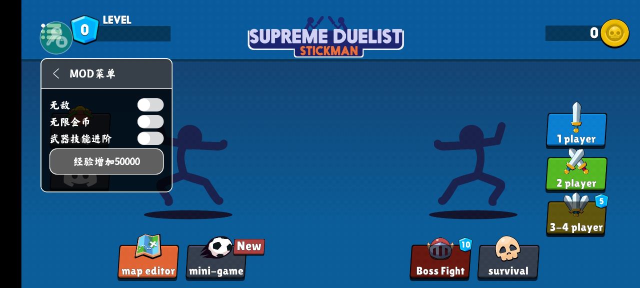 下载并安装火柴人至高对决内置作弊菜单最新版本。