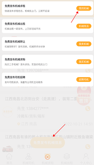 2、会智能推送最近发布的求助信息,拥有闲置机械设备的你则可以借助设备赚取租赁收益;