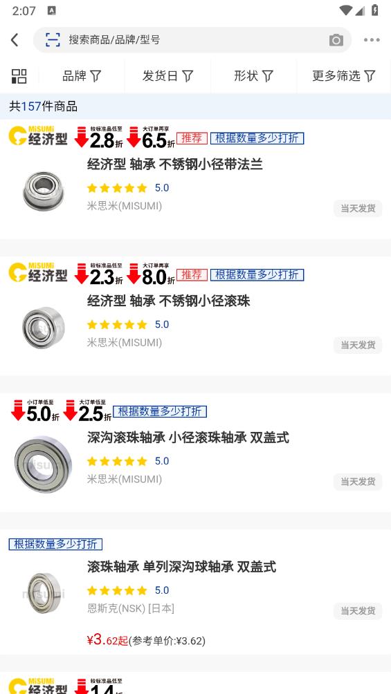 米思米闪购商城app专门提供工业产品,拥有约1000万种商品,包括自动化零件、模具组件、电子产品和工具等。这些产品均是基于客户需求的标准化零件,用户可从众多选项中挑选符合其形状、材料、尺寸和公差要求的商品。