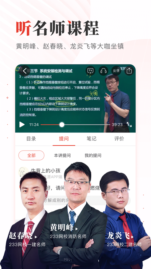 提供具有丰富从业经验、专业知识储备和行业较高知名度教师精品视频课程,为不同基础的学员设置课程,如预习班、精讲班、冲刺班、习题班、模考押题、全科VIP班、单科VIP班等。课程支持试听以及离线观看,节省流量,学员还能评论答疑,互动学习。