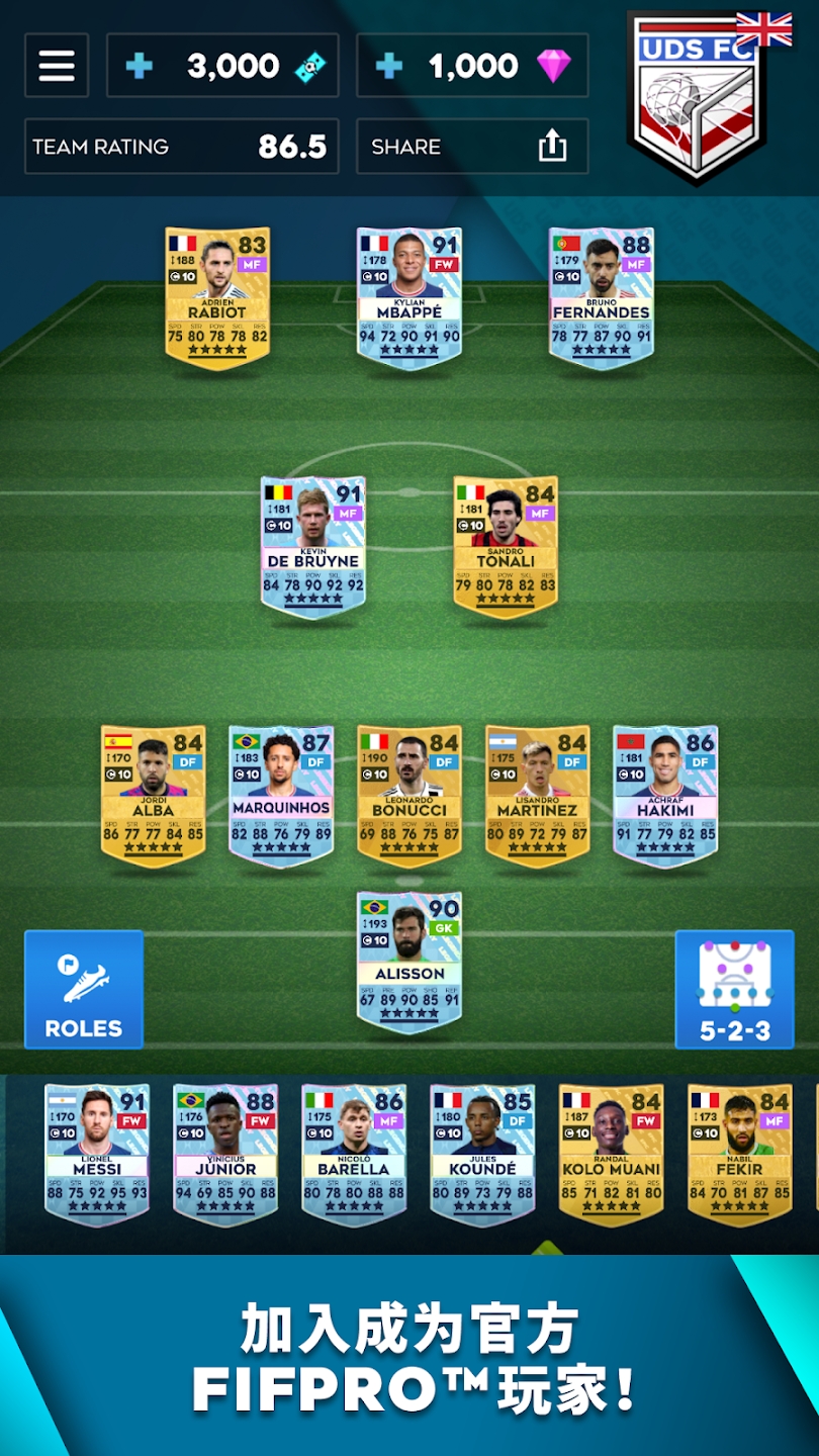 收集有FIFPRO官方授权的现役真人球员。