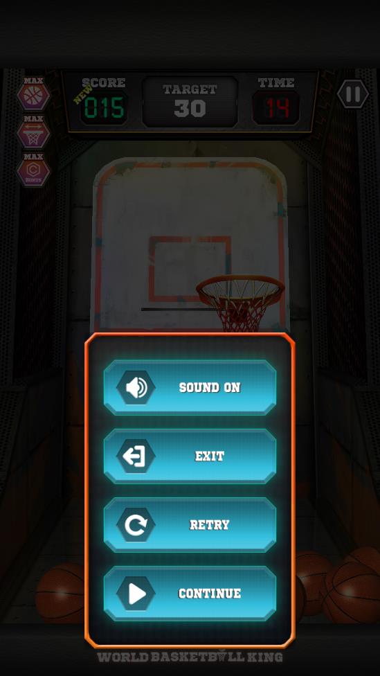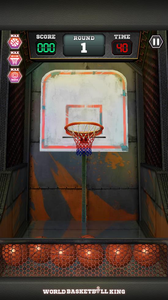游戏的规则类似与电玩城的投篮机,玩家只需要不断拾取篮球,将球投进篮筐即可得分,通过手指触摸一个篮球,然后向篮子篮筐滑动,将球投进篮筐获得分数。