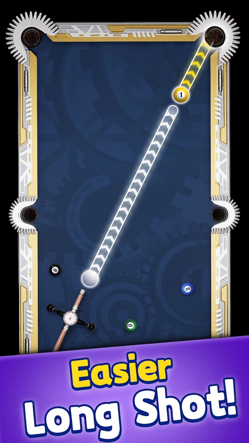 别再用尺子比着出杆了。在无限八球?中,瞄准线更长.调整角度更容易.力度控制更精准,新手也能打出惊艳的进球,你只要尽情享受进球的乐趣就好。