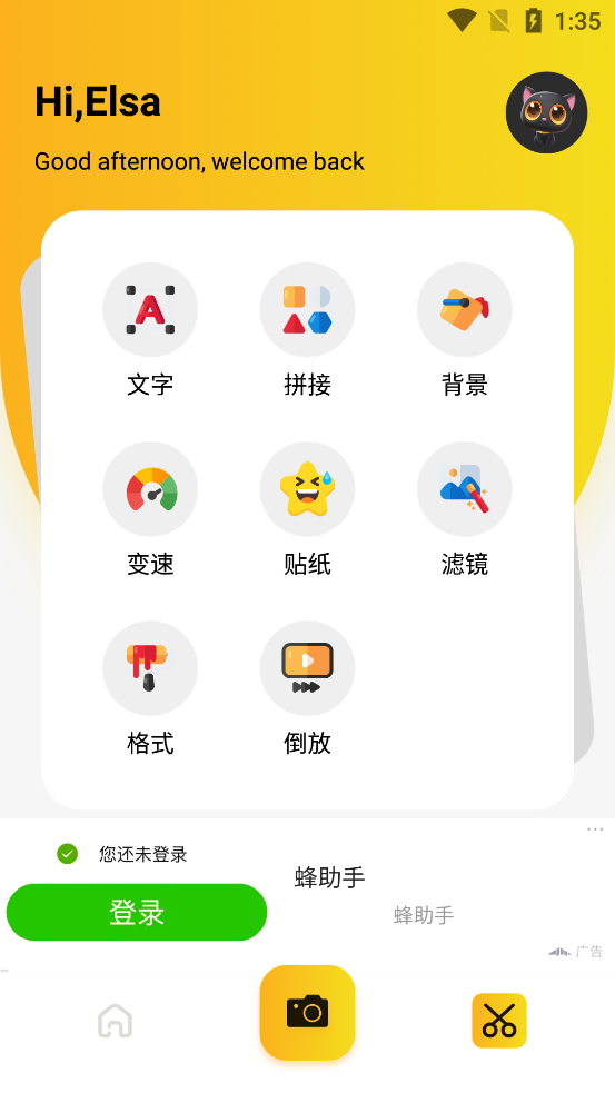 打开你的88Ps剪辑App,点击相机功能。