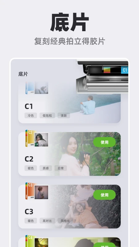 多种滤镜选择:除了模拟拍立得效果的滤镜外,可能还提供其他复古风格的滤镜。