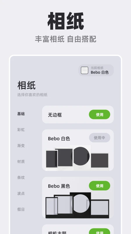 丰富的拍立得相纸库:提供极为丰富且不断更新的拍立得相纸边框,让照片更具特色。
