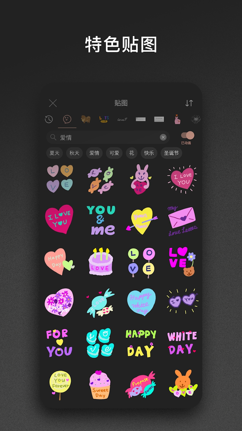 功能强大: 支持拼图、添加文字、贴纸、滤镜等多种编辑功能,还能对视频进行剪辑和添加特效。