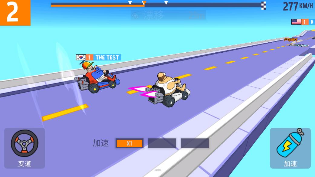 1.爆笑的游戏过程,还有很多的挑战等着你,在这里你可以和全世界的玩家进行一系列的pk战斗,一起漂移出火花。
