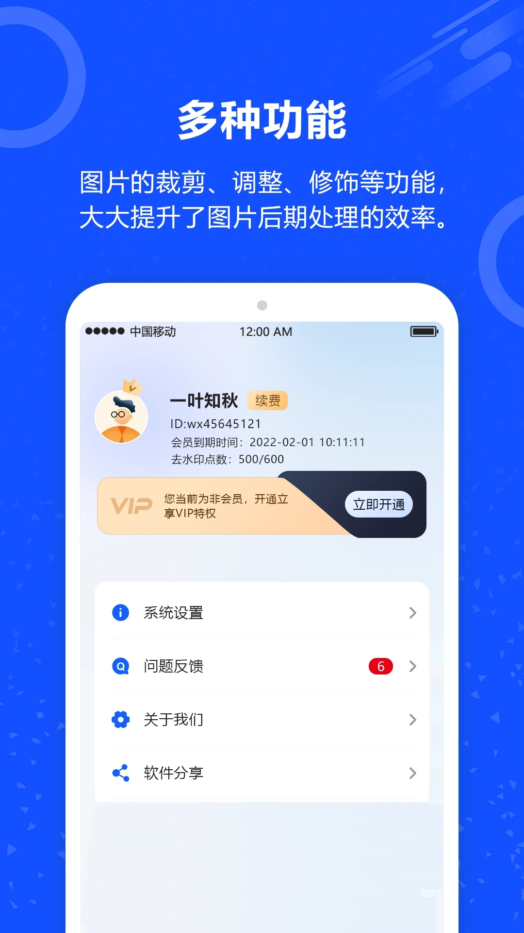 打开你的照片去水印App,点击手机号登录。