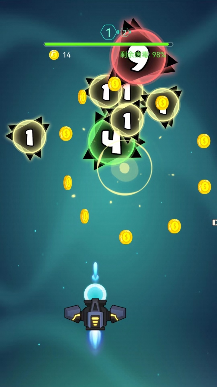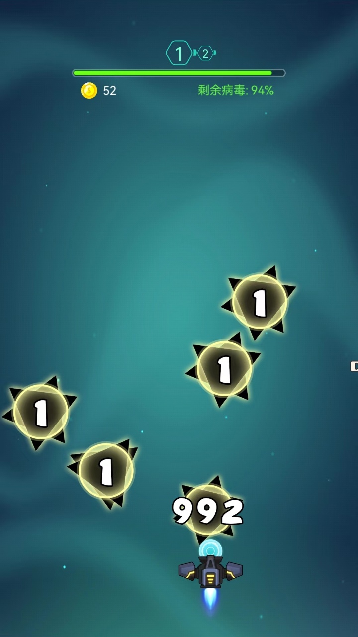 2.简单的触屏操控,通过移动射击小飞机,将全部的病毒消灭殆尽