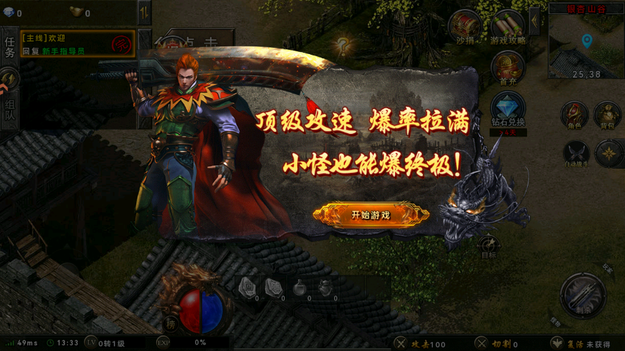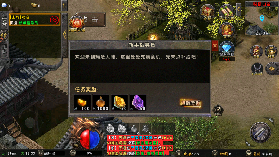 2、可以在新手练功房中刷怪升级;