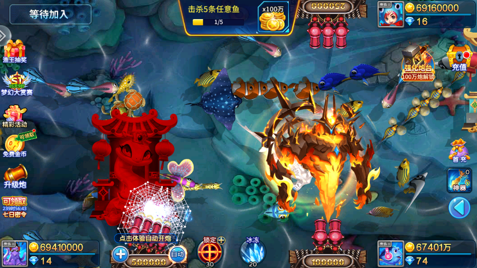 1.特殊的鱼一般来说金币会比较多,抓住机会哦!