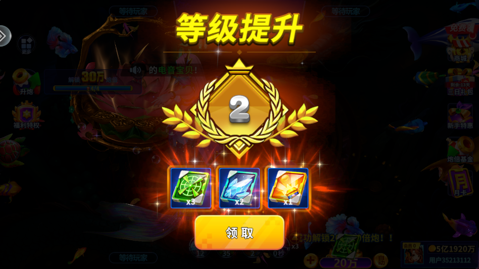3.升级炮台,获得更多的倍率来获取金币奖励吧!