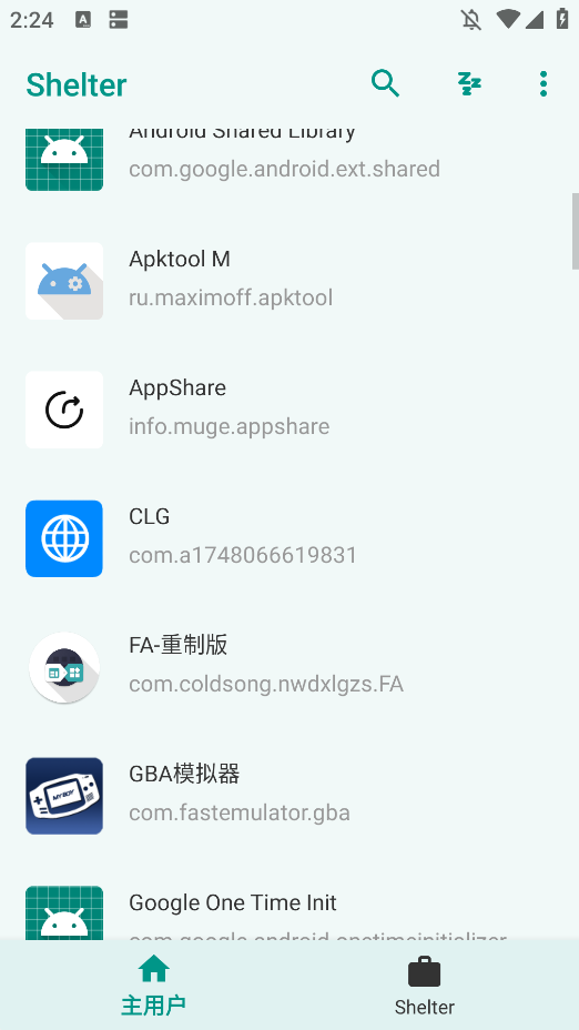 2.删除后启动Shelter,进入主界面选择需克隆的应用(如微信),即可创建隔离实例。