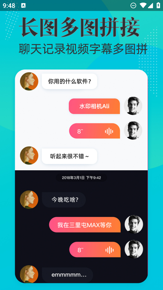 2、长图多图拼接,聊天记录视频字幕多图拼,方便便捷。