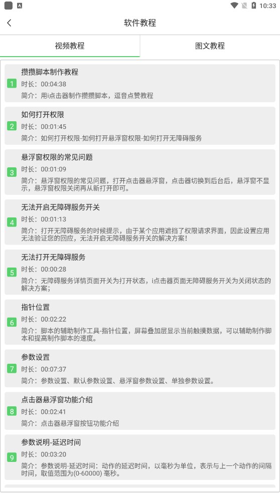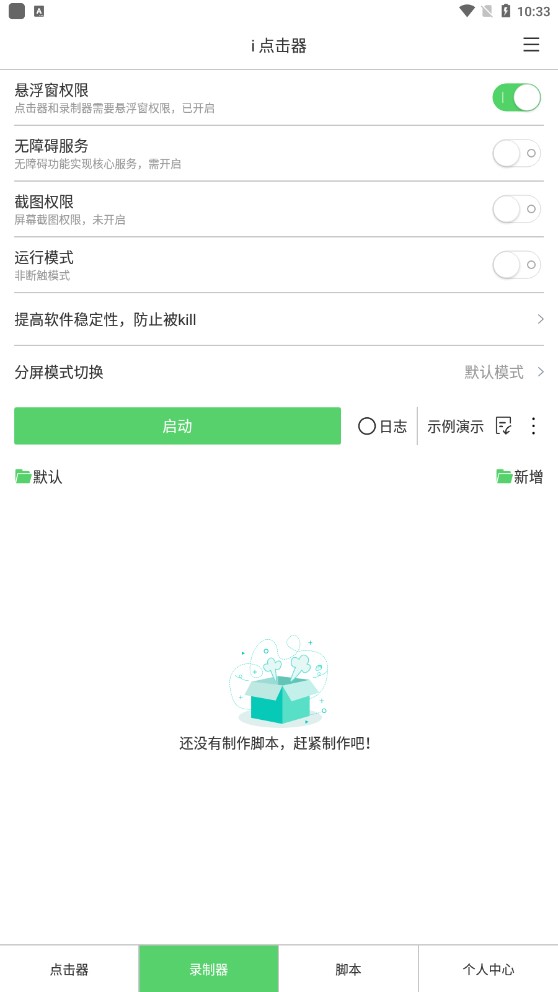 2.个性化功能支持:点击标记偏移区域显示.指针位置显示.工具条支持隐藏.点击器工具条定制.多脚本悬浮运行.脚本合并.多脚本悬浮单脚本运行.多脚本悬浮顺序运行.长按删除动作.脚本分享导入。