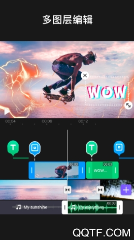 多层时间轴:直观,流畅的编辑界面,逐帧精确缩放,精确修剪影片。