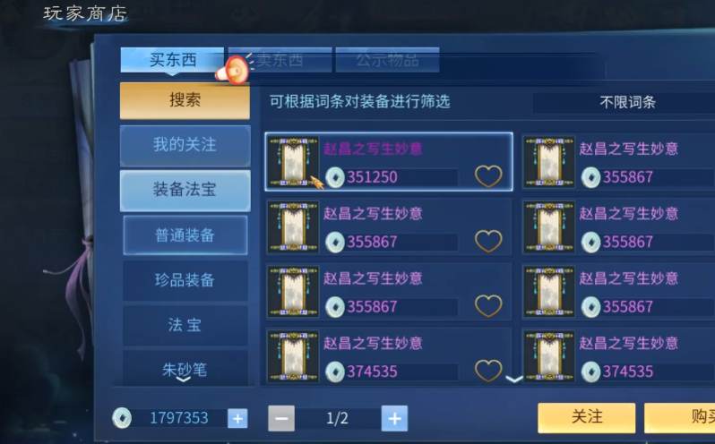 装备(尤其是高评分、稀有词条)