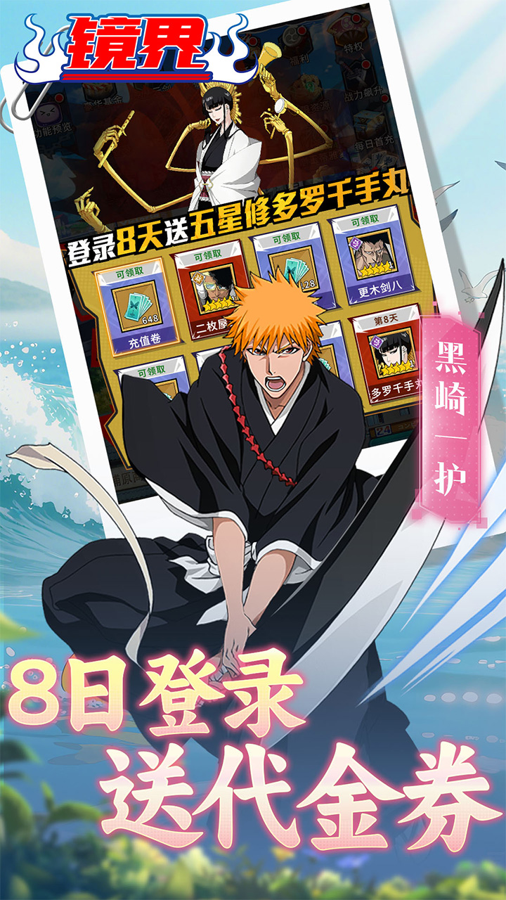 卡牌获取:通过招募系统收集经典角色(如黑崎一护、朽木白哉及登录即送的修多罗千手丸)。