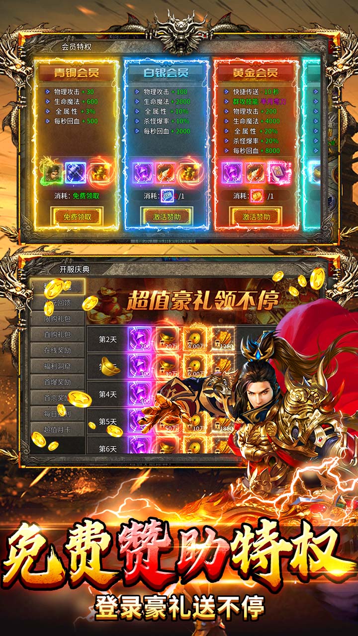 赞助入场:游戏对散人玩家极其友好,开局即送青铜赞助。玩家无需氪金即可获得基础的打金特权,逐步解锁更高级的武侠禁地。