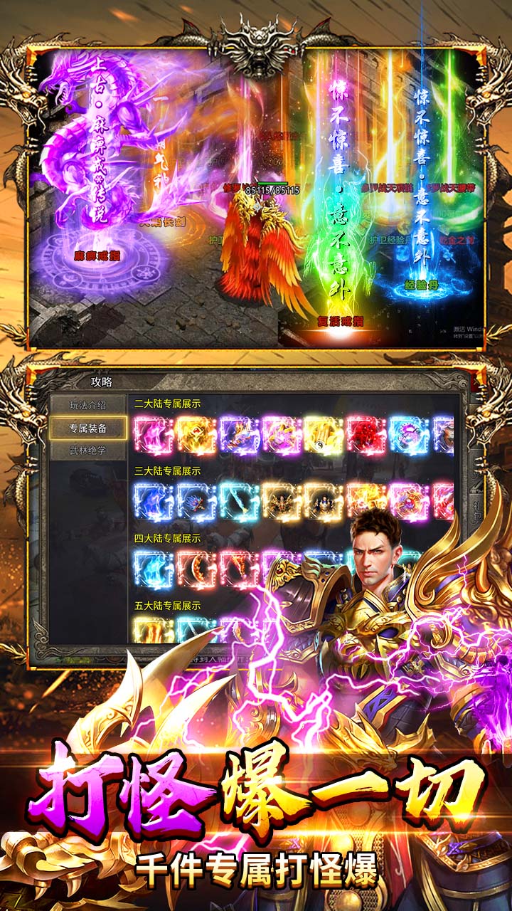专属神装“全靠爆”机制:游戏内数千种带特殊词条的专属神装不进商城,完全通过击杀BOSS产出。高爆率设定确保每一刀都有惊喜,体验最原始、最纯粹的夺宝乐趣。