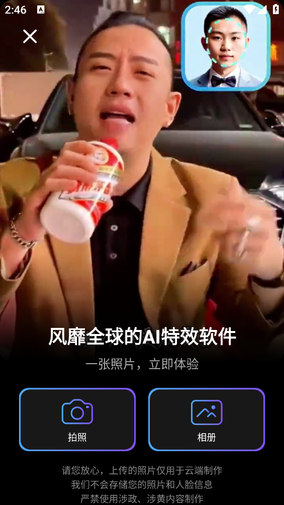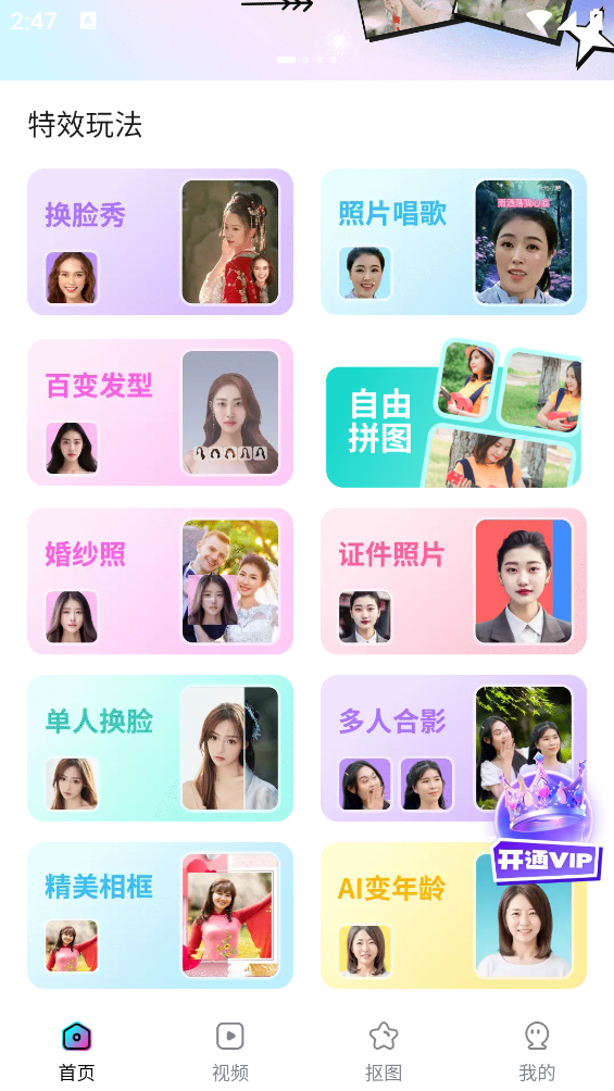1、风格多样,支持变老相机、童颜相机、前世今生、一键漫画脸等特效