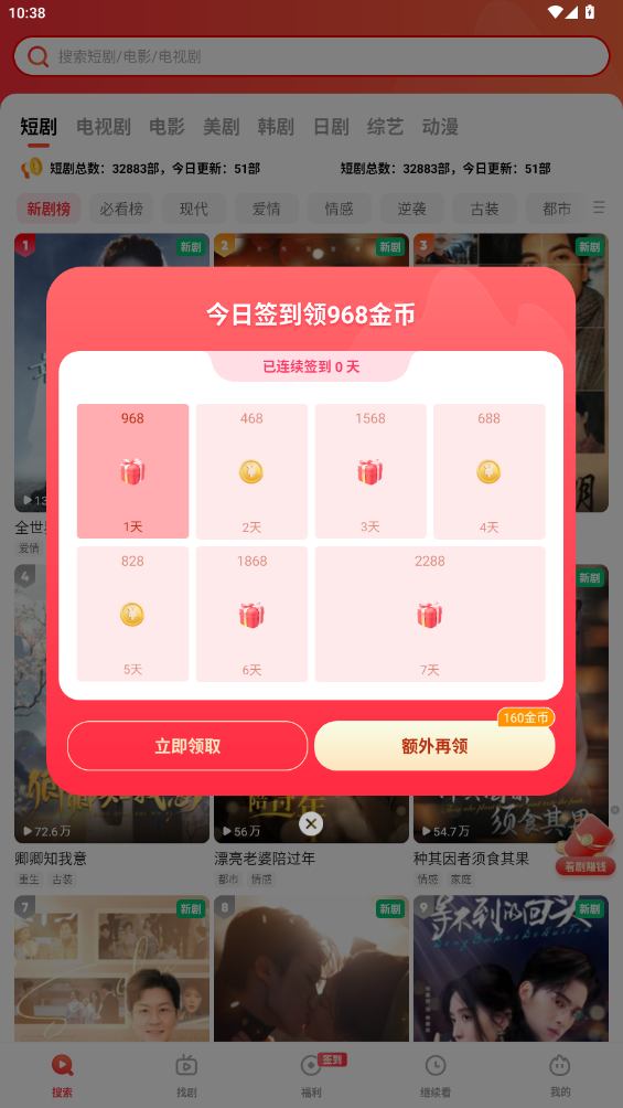 2、进入到软件首页,如图所示。新用户签到还有968金币资源可以免费领取哦。