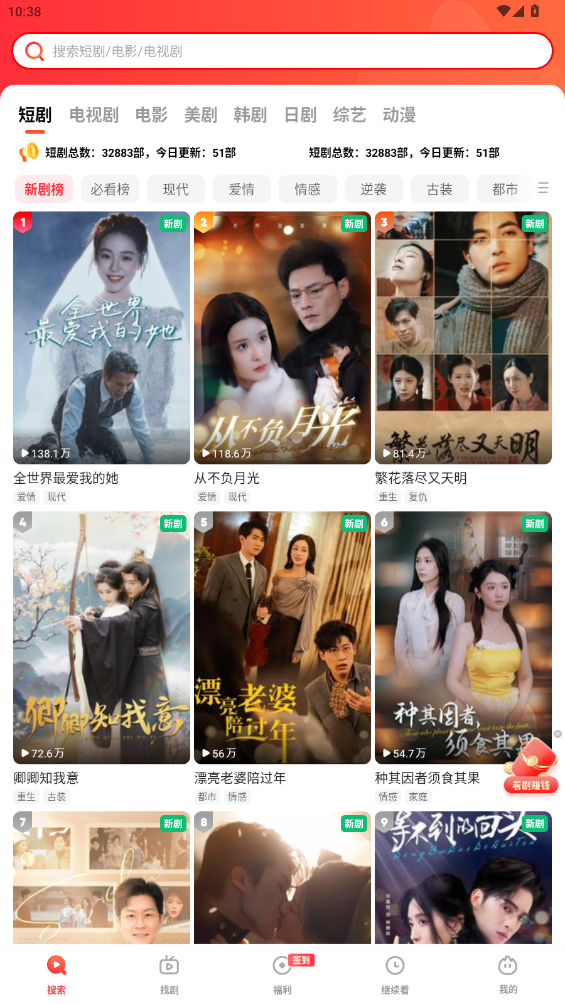 3、然后来到搜索首页,如图所示。这里有大量的短剧资源可以免费观看。