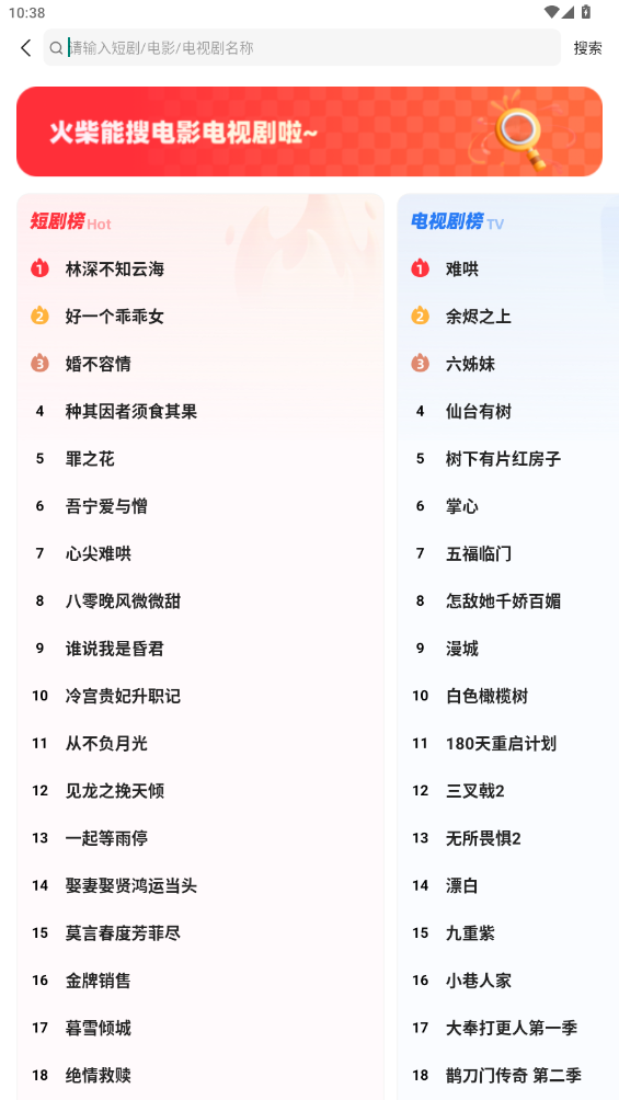 4、或者通过顶部的搜索框输入剧名实现精准搜索,而且还能看到平台上的搜索榜单,让你可以轻松知晓全网的追剧动向。