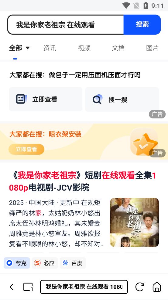 在搜索界面浏览你需要网页信息,找到你需要的剧集,点击。