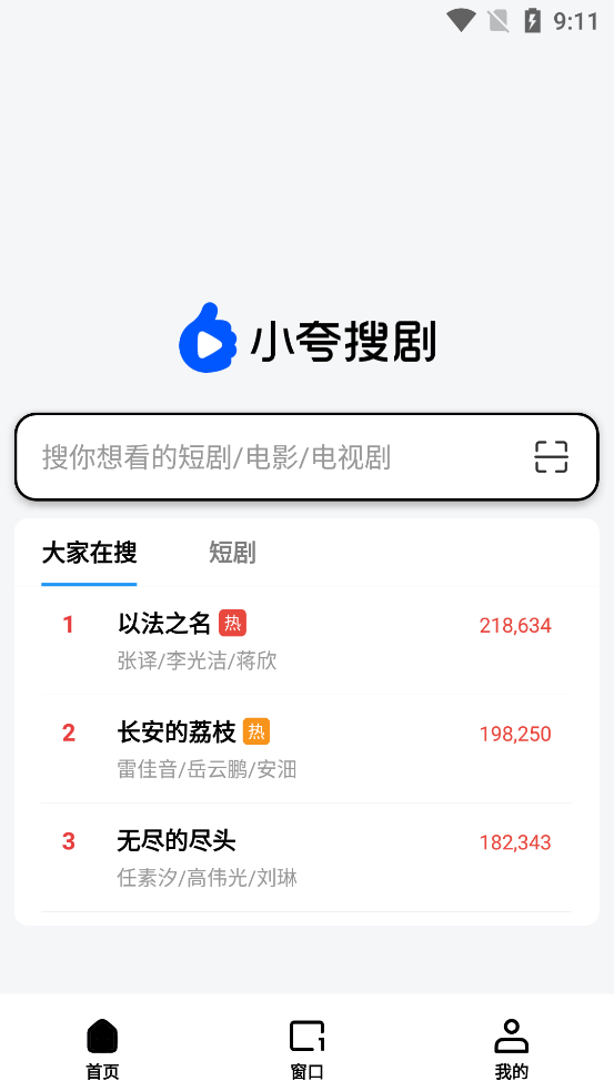 打开你的小夸搜剧,在搜索栏当中输入你想要搜的剧集名称,点击搜索。