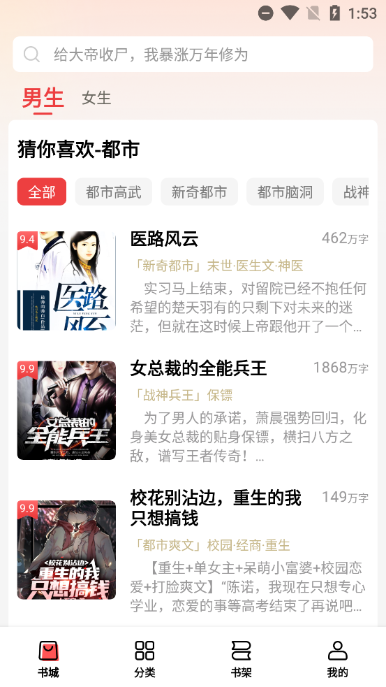 丰富的小说类型:涵盖武侠、穿越、仙侠、都市、玄幻、言情、历史等多种主流和细分的小说类型,满足不同用户的阅读偏好。