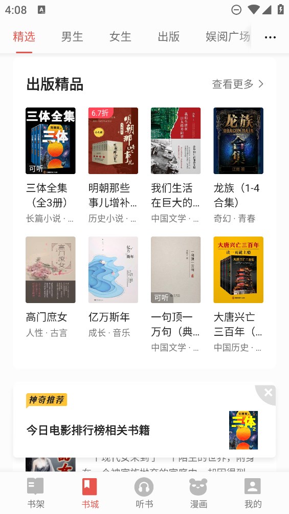 掌阅iReader的套壳版,广告少,无更新提示。将原有的三星杂志升级为一个拥有海量优质小说,漫画的手机阅读平台,用户想看什么就看什么,保证应有尽有!这款软件是由掌阅基于三星优质手机体验专业定制的一款阅读产品,这里将原有的三星杂志升级为了集图书.杂志.漫画于一身的综合阅读软件,这里不仅有上百种热门杂志第一时间更新,更提供45万册热门图书,畅销小说。