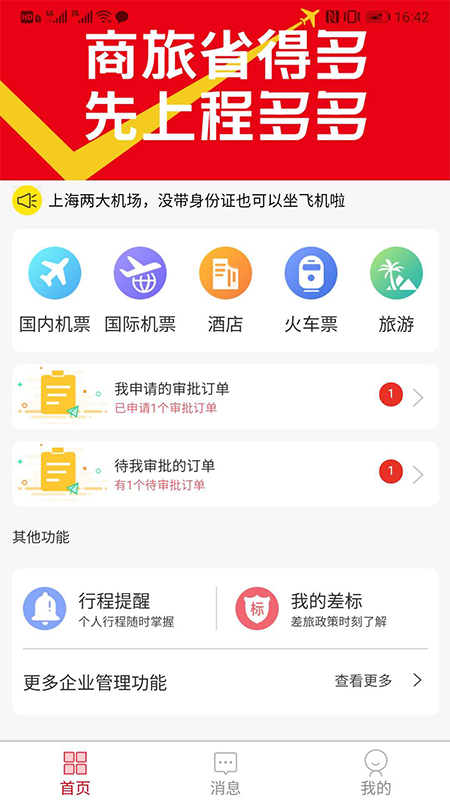 3.快速查询或者预订机票和火车票,差旅申请和管理更方便