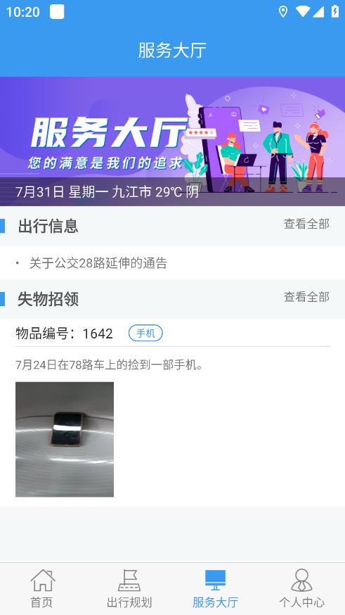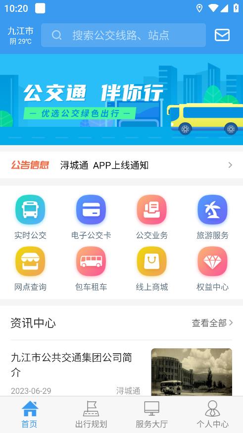 浔城通客户端是为九江市民打造的公交出行软件,功能丰富,包括实时公交查询、路线规划、电子公交卡、网点查询等等,服务大厅还有最新资讯和失物招领信息,旨在解决九江市民出行困难,需要的朋友赶紧来下载吧。