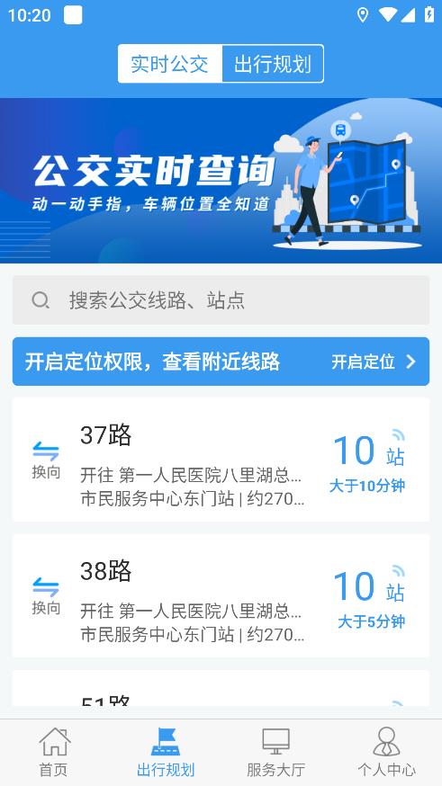 1、实时信息:查看最近的公交车,还有几站、几分钟到。