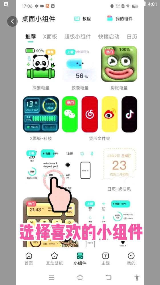 选择喜欢的小组件;