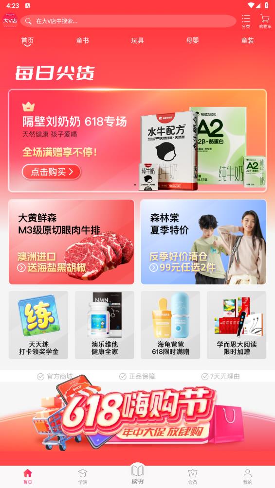 大V店app最新版最新版是一款非常优质的手机购物省钱软件,软件中有海量商品,用户可以根据自己的需求在线下单,还有积分商城、一分购等活动,用户下单之后就可以获取积分奖励,积分还可以兑换好物,喜欢的小伙伴快来下载吧。