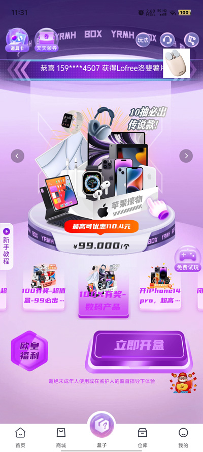 3.购买盲盒不会有任何的限制,随时都可以得到更多不错的选择。