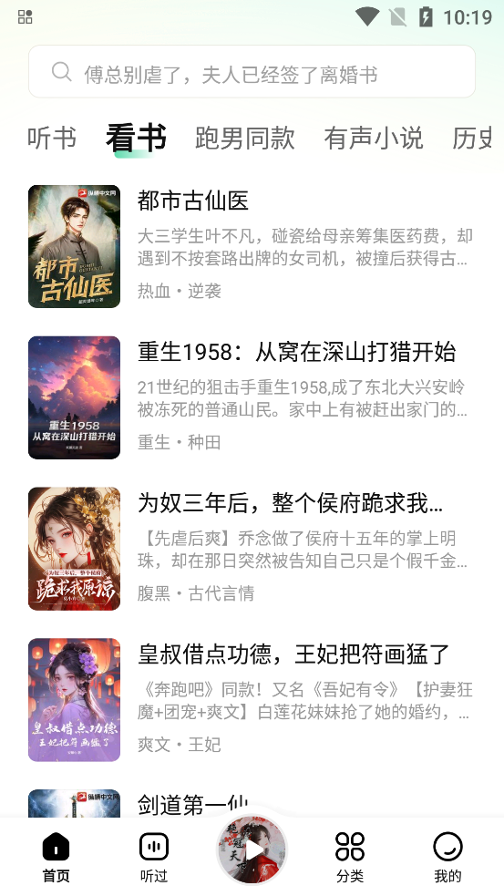 一键听书:用户只需点击“听书”按钮,即可立即开始听书,操作简单快捷。